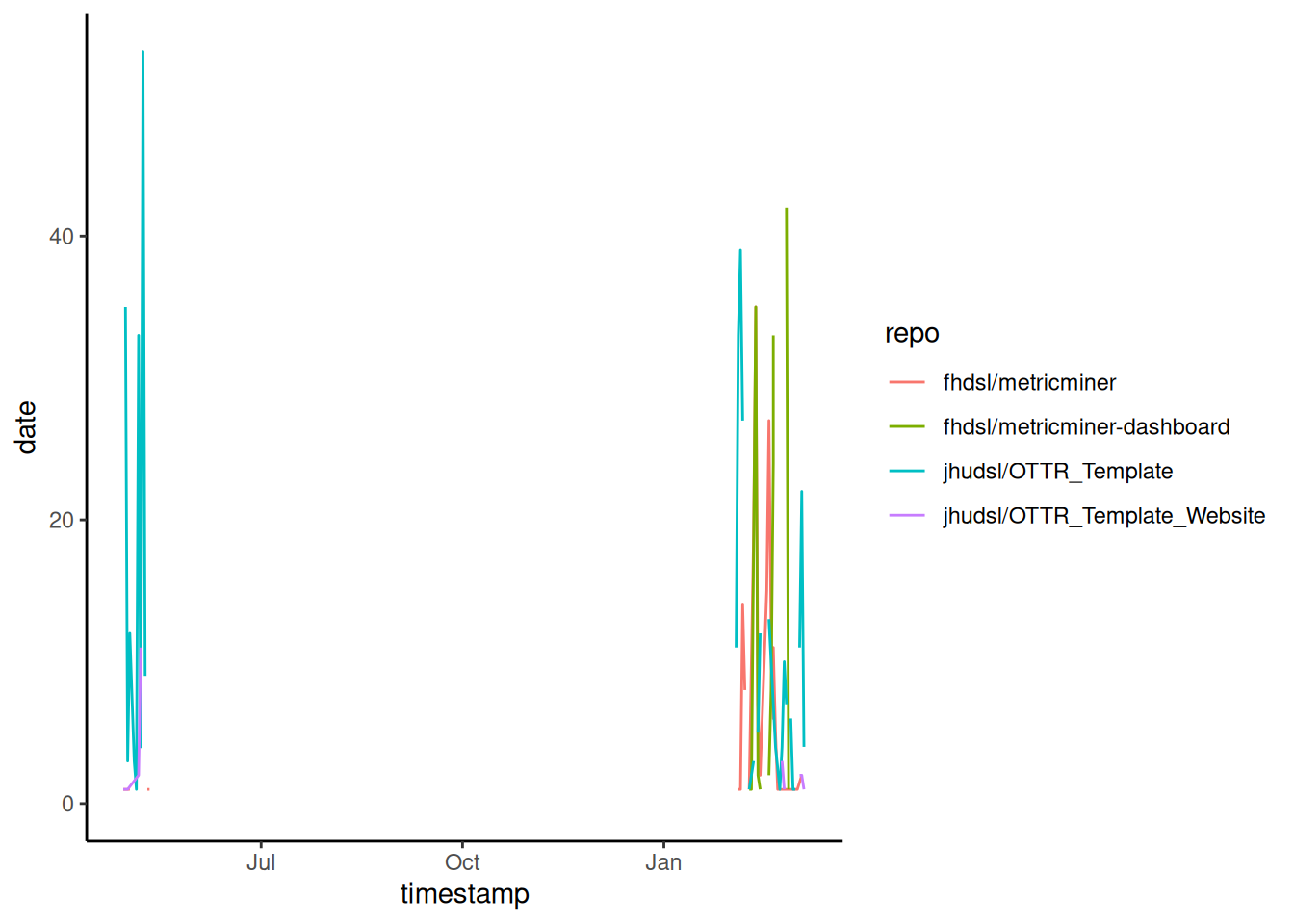 generally indicate no one viewed the repository that dateknitr::kable(github_timecourse)